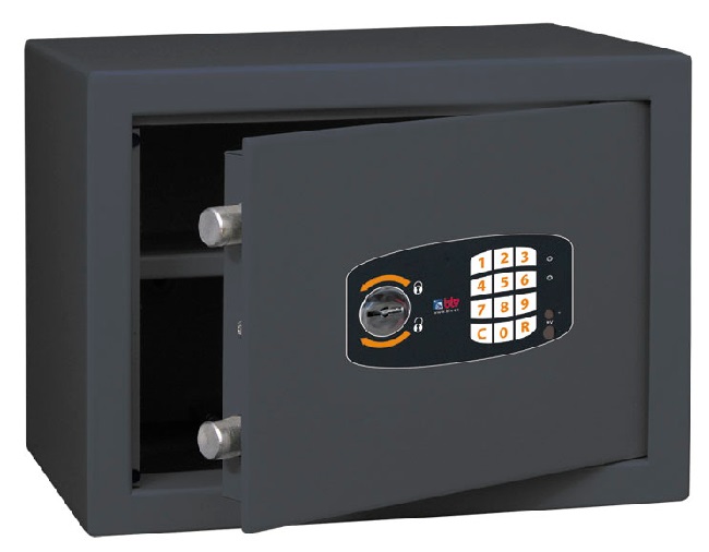 Si compró su caja fuerte por un precio barato en Internet o en una gran tienda, probablemente sea una caja fuerte electrónica con una cerradura como la que se muestra arriba.